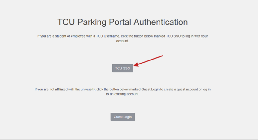 3. If you are a student or faculty/staff member, click on TCU SSO. If you are not affiliated with TCU, click on Guest Login.